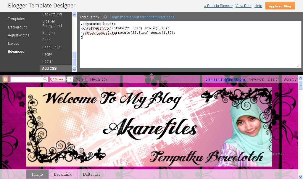 2. Setelah berada di halaman Dashboard silahkan anda Pilih Design dan anda akan diantar ke halaman Edit Layout, Tepatnya Blogger Template Designer